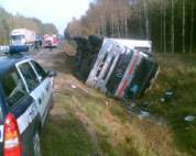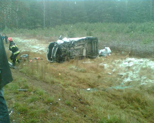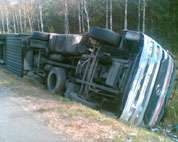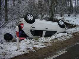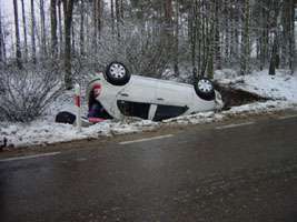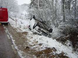 W dniu 27 listopada 2007r. o godz. 10 44 w Gąsiorowie, gm.Zaręby Kościelne doszło do groźnie wyglądającego wypadku drogowego. W wyniku niedostosowania prędkości do warunków jazdy dachował samochód osobowy w którym podróżował tylko kierowca. Kierujący pojazdem nie został ranny i opuścił pojazd o własnych siłach. W działaniach ratowniczych uczestniczyło 2 zastępy JRG oraz zastęp OSP Małkinia.