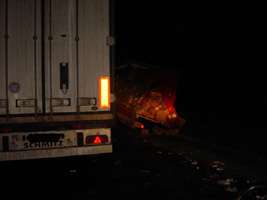 Po przybyciu na miejsce pożaru zastępu JRG, ogniem objęta była skrzynia ładunkowa i przyczepa ciężarówki przewożącej pieluchy jednorazowe, podpaski,