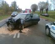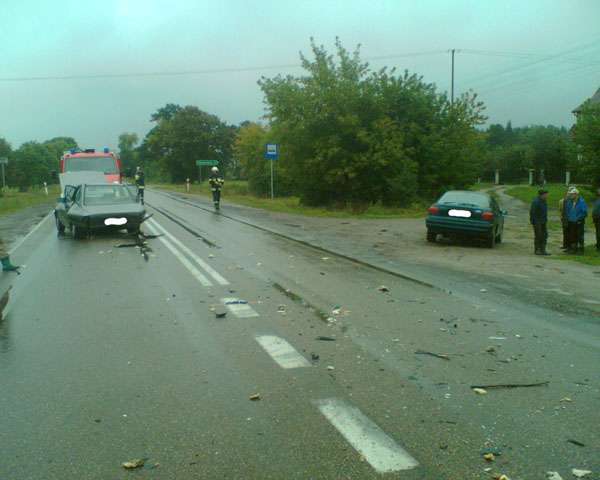 W dniu 22 listopada 2007r. o godz. 20 16 na ul. Stacyjnej doszło do groźnego wypadku w którym ciężko ranne zostały 2 osoby. Prawdopodobną przyczyną zdarzenia było wymuszenie pierwszeństwa przejazdu przez samochód osobowy przy wyjeździe z posesji. Działania straży pożarnej polegały na zabezpieczeniu miejsca zdarzenia, wykonaniu dostępu do poszkodowanych przy użyciu narzędzi hydraulicznych oraz uwolnieniu ich z rozbitego pojazdu i przekazaniu zespołom ratownictwa medycznego.