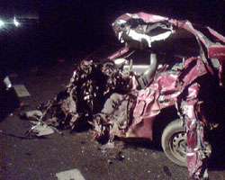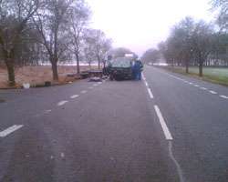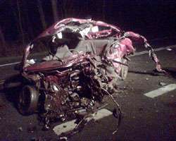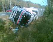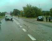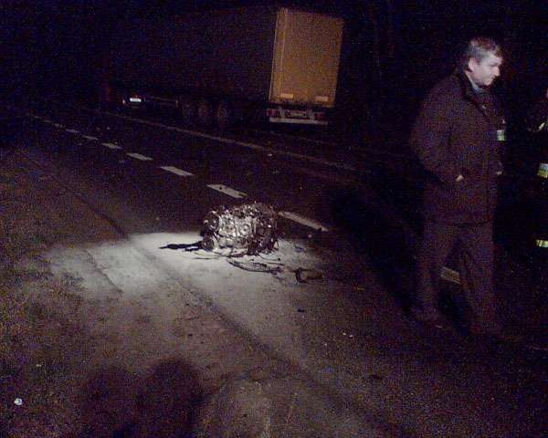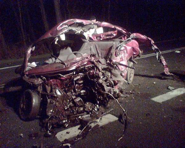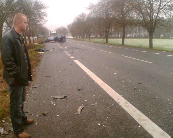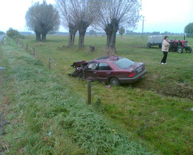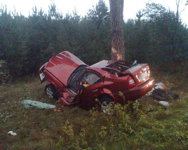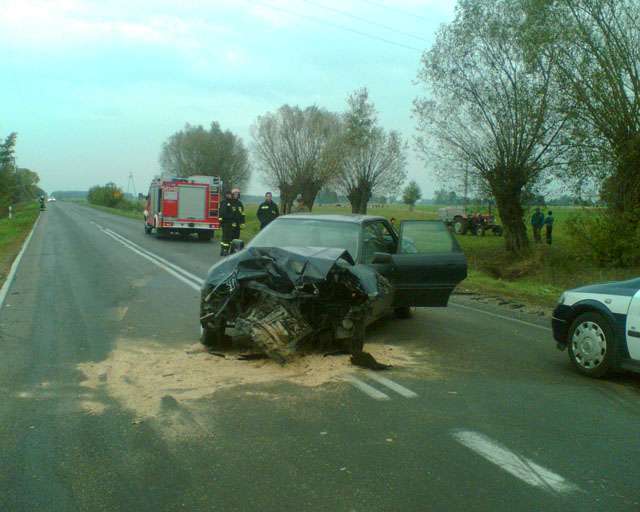 W dniu 18 listopada 2007r. na trasie k-8 na wysokości wsi Budy Grudzie doszło do tragicznego wypadku w którym zginął na miejscu kierowca samochodu osobowego. Przyczyną wypadku była prawdopodobnie nadmierna prędkość i wyprzedzanie na "trzeciego". Przedstawione poniżej zdjęcia nie wymagają komentarza.
