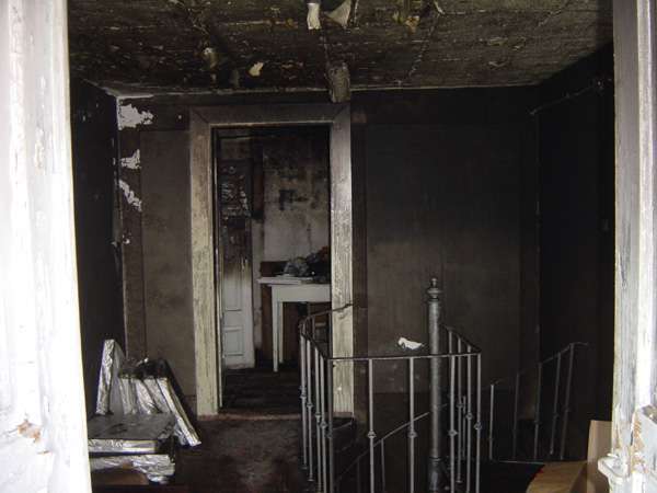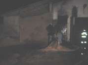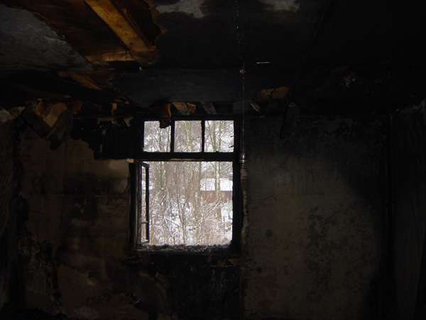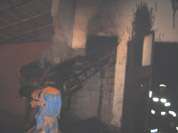 Po przybyciu na miejsce pożaru paliły się pomieszczenia mieszkalne na parterze. Ratownicy ubrani w aparaty ODO prowadząc