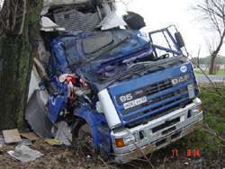 W dniu 11 kwietnia br.w godzinach rannych, doszło do wypadku samochodu ciężarowego na trasie k-8, w pobliżu Prosienicy. Prawdopodobnie kierowca zasnął za kierownicą i uderzył w drzewo. Jak widać ze zdjęć, to że nic mu się nie stało należy chyba zaliczyc do cudów. W działaniach zabepieczających miejsce zdarzenia brało udział 3 zastępy JRG PSP.