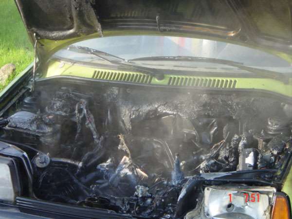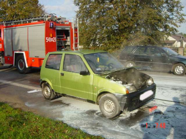 W dniu 1 października 2007r. o godz. 8 40 doszło do pożaru samochodu osobowego Fiat CC, na ul. Warszawskiej w Ostrowi Mazowieckiej. Po przybyciu na miejsce pożaru zastępu JRG PSP samochód był gaszony przy pomocy gaśnic przez osoby postronne. Prawdopodobną przyczyna powstania pożaru było zwarcie instalacji w komorze silnika.