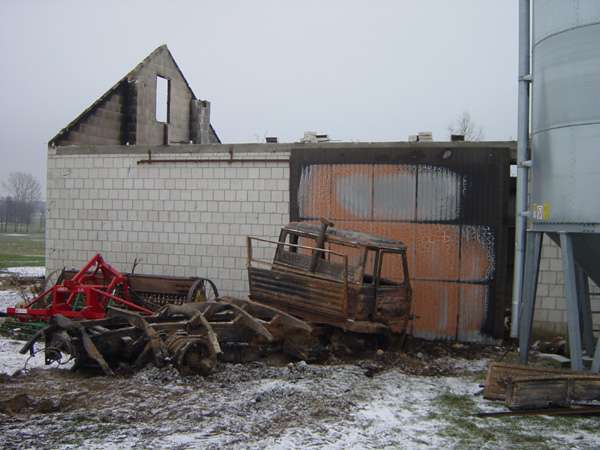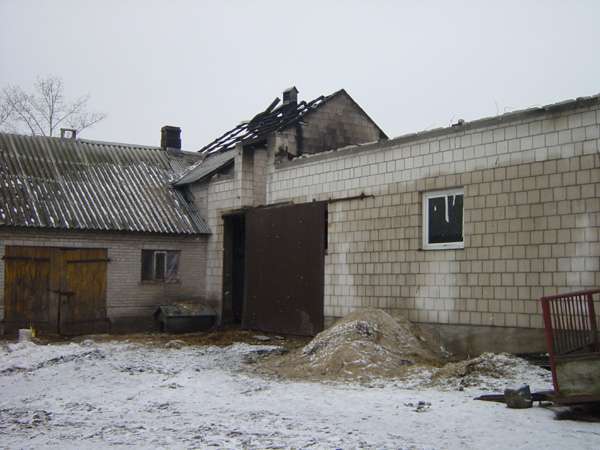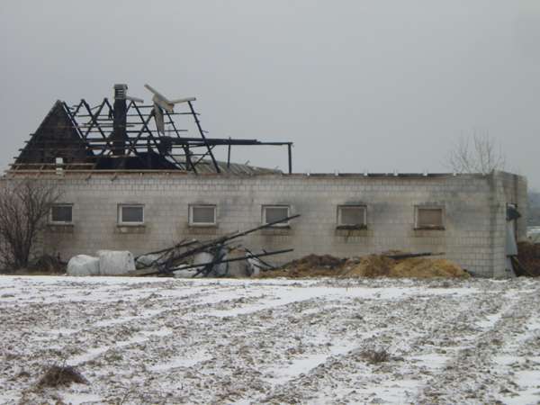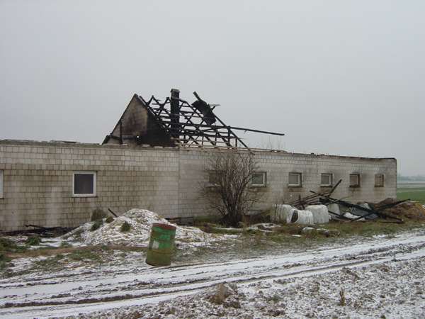 W dniu 5 lutego br. o godz. 4 59 do PSK w Ostrowi Mazowieckiej wpłynęło zgłoszenie o pożarze chlewni i budynków gospodarczych w msc. Zgorzałowo, gm. Wąsewo. Po przyjeździe na miejsce akcji pierwszego zastępu ratowniczo- gaśniczego płomieniami objęte było całe poddasze budynku, w którym wydzielone były: garaż, pomieszczenie magazynowania ziemniaków, magazyn pasz i pomieszczenie ich mieszalni oraz chlew w którym przebywało 180 szt. trzody chlewnej. Oprócz poddasza płonął całkowicie ww. garaż i paszarnia. Na poddaszu zmagazynowana była słoma