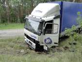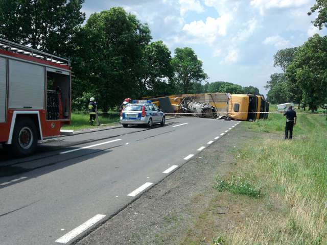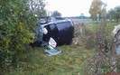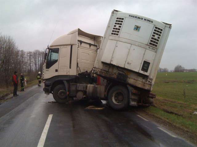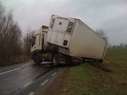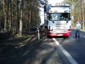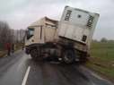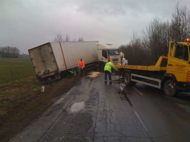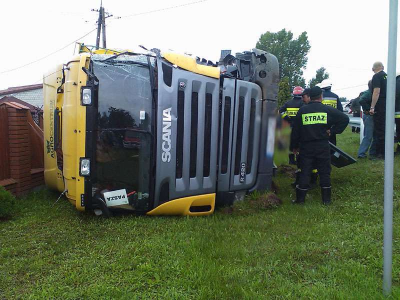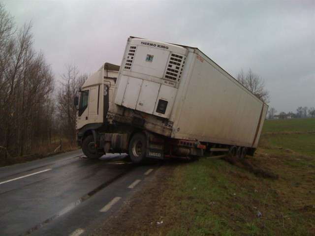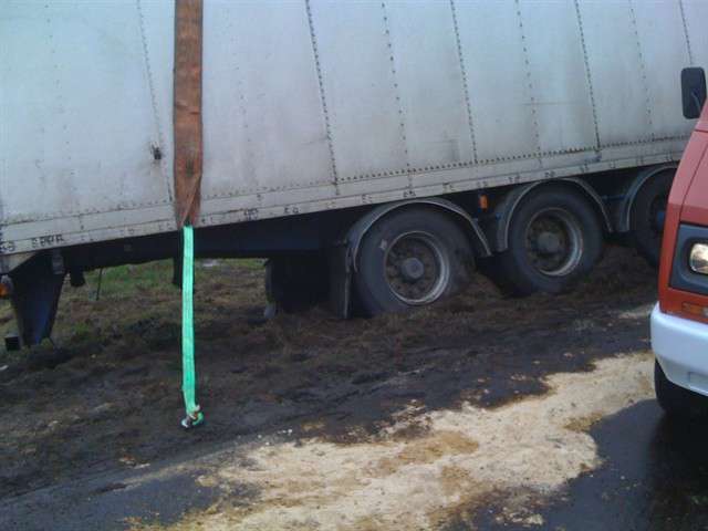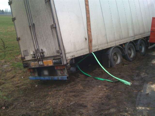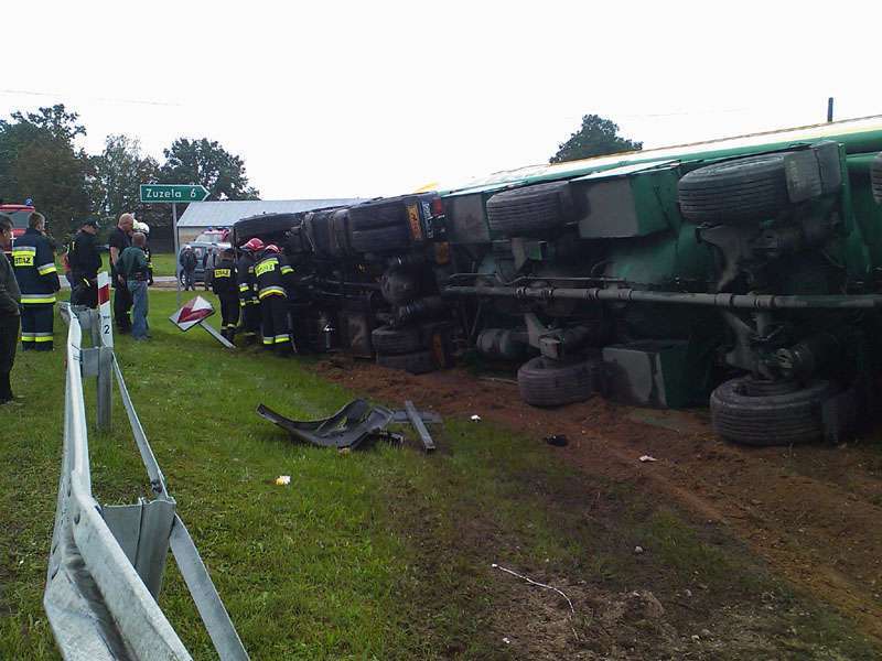 Samochód ciężarowy na litewskich numerach rejestracyjnych zjechał do rowu i uszkodził zbiornik paliwa. W działaniach ratowniczych związanych z zabezpieczeniem miejsca zdarzania uczestniczyły 2 zastępy JRG PSP. Utrudnienia w ruchu trwały ponad 3 godziny.