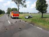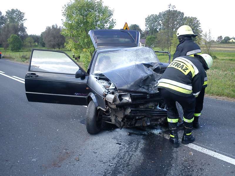 W dniu 7 czerwca br. o godz. 13.32, na trasie do Różana doszło do bardzo groźnego wypadku drogowego. Prawdopodobnie w wyniku błędnie przeprowadzonego manewru wyprzedzania, doszło tam do zderzenia samochodu osobowego VW Golf z ciężarówką. Ciężko rannego kierowcę samochodu osobowego przewieziono do szpitala. Trasa nr. 60 została całkowicie zablokowana. W działaniach ratowniczych uczestniczyły 3 zastępy JRG PSP i zastęp WSP Komorowo.