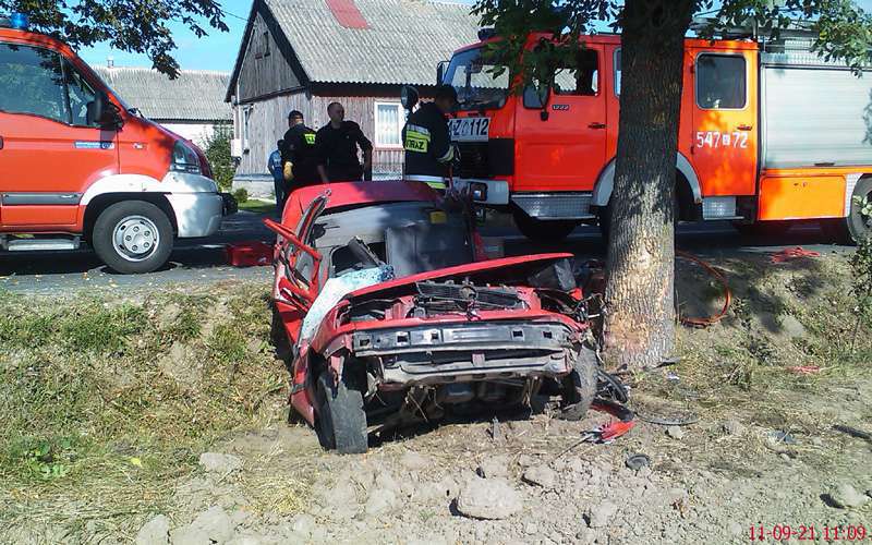 Prawdopodobnie w wyniku nadmiernej prędkości, kierujący samochodem audi 80 stracił kontrolę nad pojazdem i uderzył w drzewo. Ciężko ranny kierowca został przewieziony do szpitala. W działaniach ratowniczych uczestniczył zastęp OSP Małkinia oraz JRG PSP Ostrów Maz.