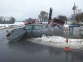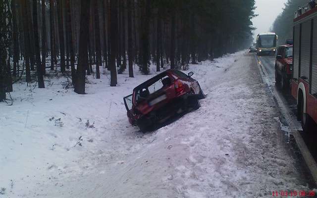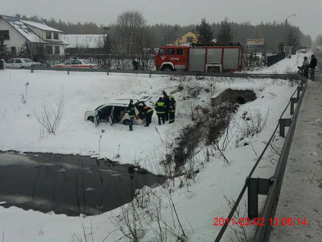 W dniu 2 lutego br. o godz. 12.47 doszło do wypadku drogowego w miejscowości Gąsiorowo, gm. Zaręby Kościelne. Prawdopodobnie w wyniku nadmiernej prędkości w stosunku do warunków panujących na drodze. Samochód osobowy wpadł w poślizg i wylądował w głębokim rowie. Rannego kierowcę przewieziono do szpitala. W akcji ratowniczej uczestniczyły 2 zastępy JRG PSP oraz zastęp OSP Zaręby Kościelne.