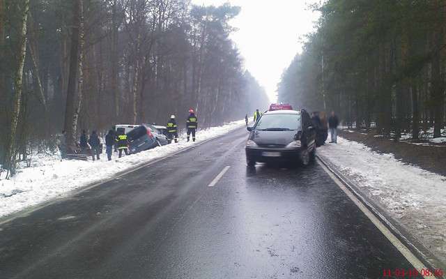 W dniu 25 stycznia br. o godz. 13.46 doszło do wypadku drogowego na trasie S-8, na wysokości miejscowości Przyjmy k. Poręby. Samochód osobowy prawdopodobnie w wyniku niedostosowania prędkości do warunków panujących na jezdni. Wpadł do rowu i dachował. Osoby podróżujące pojazdem opuściły go o własnych siłach. W działaniach ratowniczych uczestniczył jeden zastęp JRG PSP oraz zastęp OSP Nagoszewka.