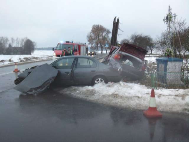 W dniu 12 stycznia br. o godz. 14.38 doszło do wypadku drogowego w Nieskórzu gm. Ostrów Maz. Samochód osobowy m-ki Nissan, zderzył się z samochodem osobowym m-ki Opel Astra. W wyniku zderzenia dwie osoby zostały ranne. W działaniach ratowniczych uczestniczył zastęp JRG PSP Ostrów Maz. i OSP Małkinia Górna.