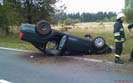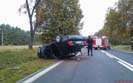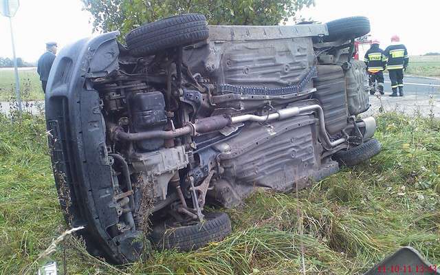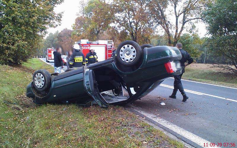 Z nieustalonych przyczyn kierujący samochodem osobowym m-ki VW Passat stracił kontrolę nad pojazdem i dachował.