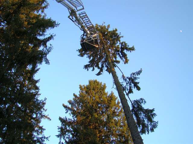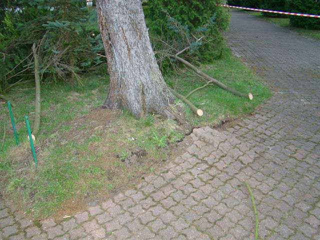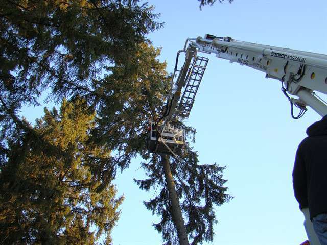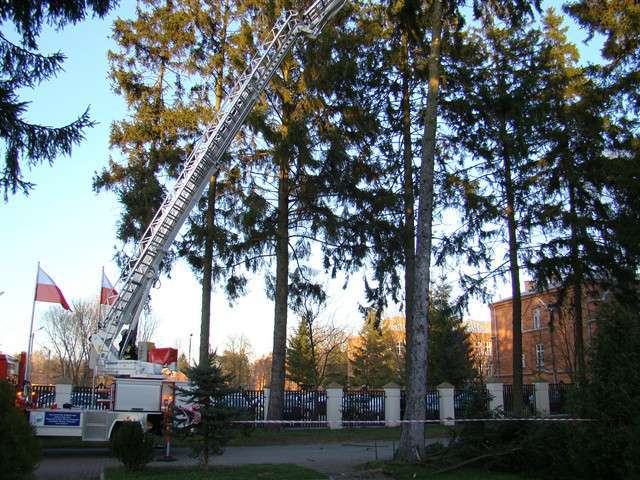 W dniu 10 kwietnia br. o godz. 18.30 jeden zastęp JRG PSP Ostrów Maz., usuwał pochyły świerk rosnący, na terenie placu przy kościele garnizonowym w Komorowie. Drzewo po ostatnich silnych wiatrach, znacznie odchyliło się od pionu stwarzając realne zagrożenie runięciem na ziemię.