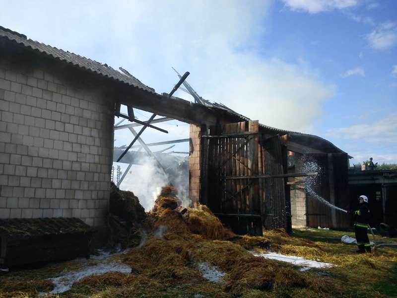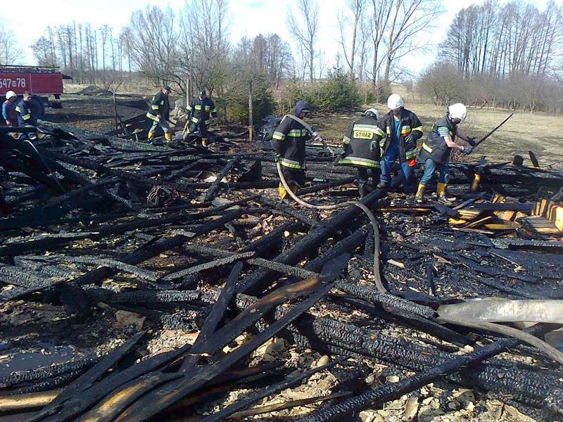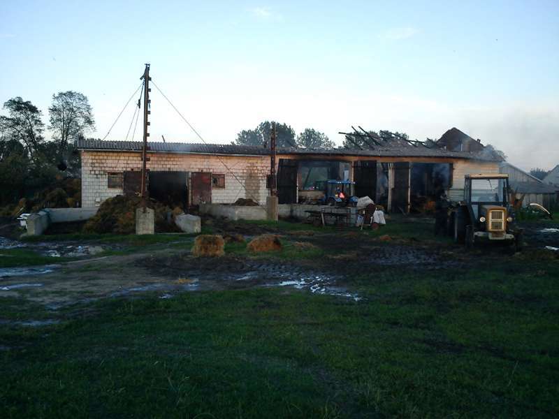 Po przybyciu na miejsce pożaru jednostek straży, ogniem objęta była stodoła oraz poddasze przylegającej do niej obory. Na szczęście gospodarze zdołali ewakuować inwentarz /50 krów oraz 12 tuczników/ który znajdował się w oborze. Przyczyny powstania pożaru są ustalane przez ostrowską policję. W działaniach gaśniczych brało udział 2 zastępy OSP Zaręby Kościelne, 2 zastępy OSP Andrzejewo, OSP Chmielewo, OSP Nieskórz, OSP Małkinia Górna, OSP Nur, OSP Boguty Pianki, OSP Świerże Kończany oraz zastępy Państwowej Straży Pożarnej.