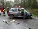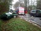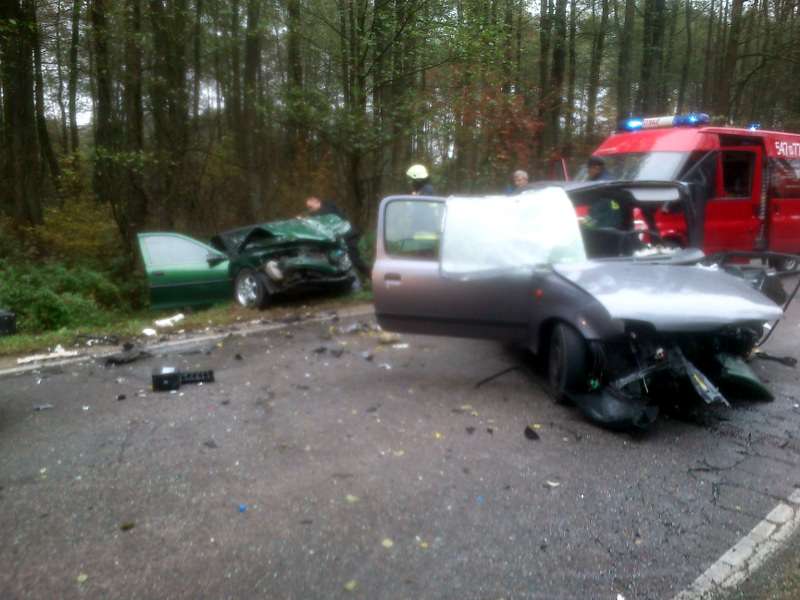Do groźnego wypadku drogowego doszło w dniu 22 października br.o godz. 14.23 na drodze z Ostrowi Mazowieckiej do Małkini Górnej. W wyniku czołowego zderzenia dwóch samochodów osobowych, ciężko ranni zostali ich kierowcy. Obie osoby kierujące pojazdami zostały uwolnione z pojazdów przy pomocy narzędzi hydraulicznych i odwiezione do szpitala. W działaniach ratowniczych uczestniczyły 2 zastępy OSP Małkinia Górna i 2 zastępy JRG PSP.