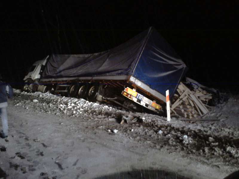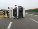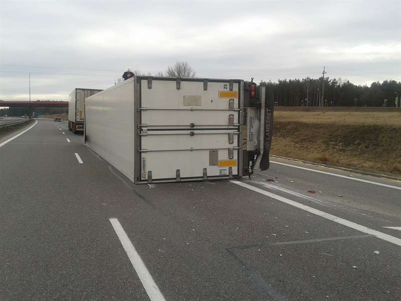 Po przybyciu na miejsce zdarzenia zastępów straży, samochód ciężarowy przewożący półtusze zwierzęce leżał na lewym boku, blokując jeden pas ruchu na obwodnicy. Z jednego ze zbiorników w niewielkich ilościach wyciekało paliwo. Kierowca pojazdu nie odniósł obrażeń, w działaniach ratowniczych brały udział 3 zastępy JRG PSP.