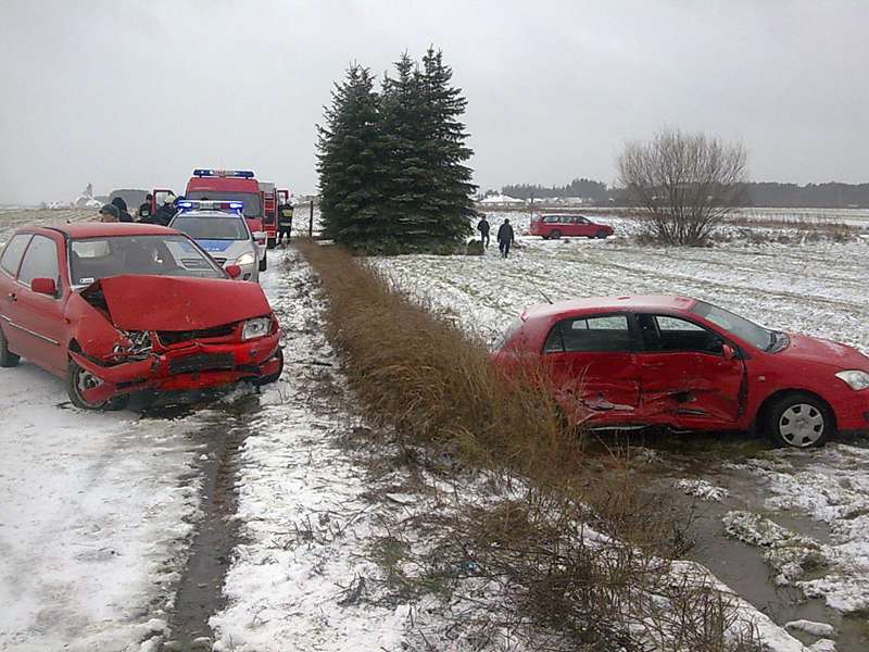 Zderzyły sie dwa samochody osobowe, Toyota Corolla i VW Polo. Na szczęście w wypadku nikt nie odniósł poważniejszych obrażeń. W działaniach ratowniczych uczestniczył zastęp OSP Małkinia, oraz zastęp JRG PSP Ostrów Maz.