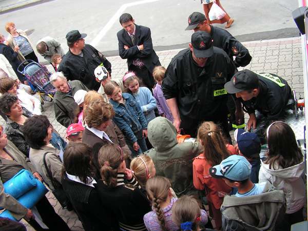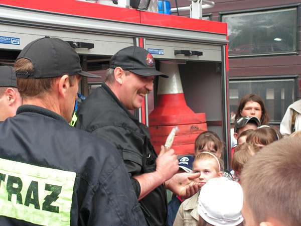 Po rozdaniu nagród nasi goście mieli okazję zapoznać się bliżej zarówno z pracą policjantów jak i strażaków. Obejrzeli wozy strażackie, radiowozy policyjne oraz specjalnie szkolonego psa patrolowego.