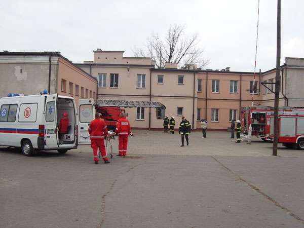 O godzinie 11.00 w jednej z sal szpitalnych na Oddziale Wewnętrznym Szpitala Powiatowego im. Marii Skłodowskiej-Curie położonym na pierwszym piętrze dochodzi do podpalenia wyposażenia pokoju przez jednego z pacjentów. Wskutek nagromadzenia znacznej ilości materiałów palnych pożar rozwija się bardo szybko, a dym ogarnia coraz większą przestrzeń oddziału. Personel ogłasza alarm i przystępuje do ewakuacji pacjentów, jednocześnie powiadamiając Państwową Straż Pożarną oraz Dyrekcję Szpitala o zaistniałej sytuacji... Tak rozpoczyna się scenariusz ćwiczeń
