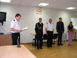 W dniu 31 maja 2007r. po 22 latach służby odszedł na emeryturę zasłużony pracownik naszej komendy asp.sztab. Sławomir Parzych. W ciągu swej długoletniej służby asp.sztab. Parzych sprawdził się na wielu stanowiskach służbowych zarówno w Komendzie Powiatowej, jak i w Jednostce Ratowniczo Gaśniczej. Szczególne zasługi położył na polu współpracy z jednostkami Ochotniczych Straży Pożarnych. W toku służby został odznaczony Brązowym Krzyżem Zasługi oraz Złotym Medalem za Zasługi Dla Pożarnictwa.