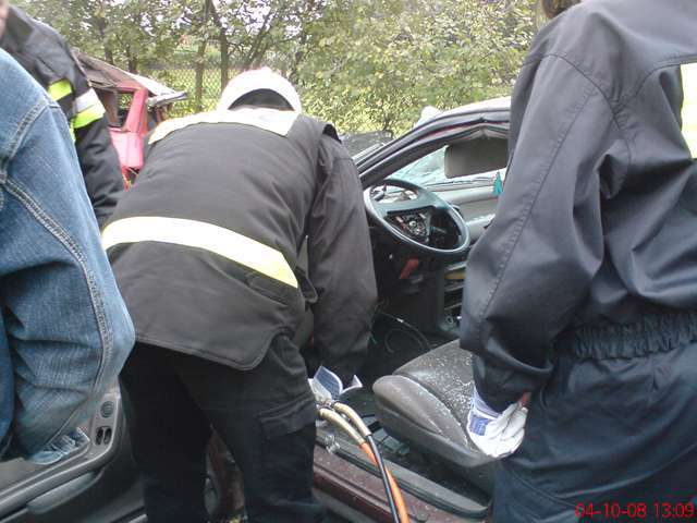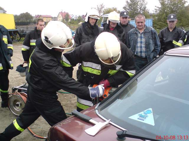 Dzięki uprzejmości p. Janusza Kupca, nasi strażacy mieli możliwość przełożenia wiadomości teoretycznych, na praktyczne podczas szkoleniowego cięcia