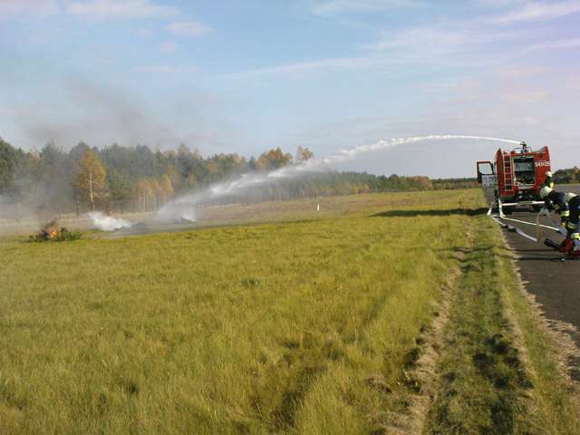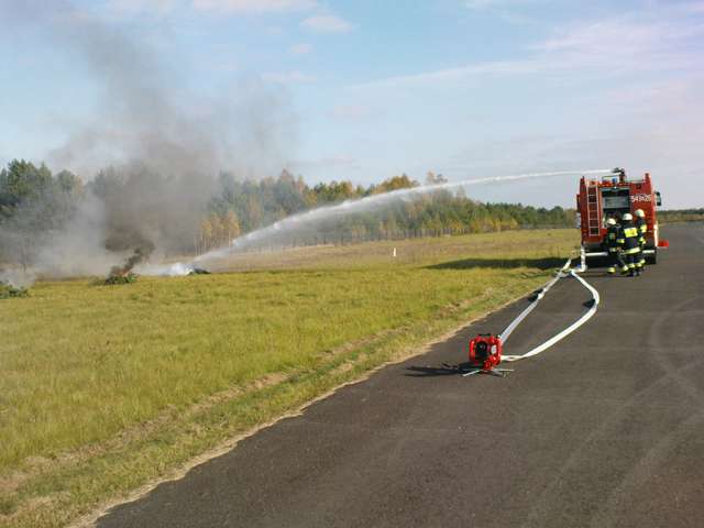 sprzętu i akcji gaśniczej na lotnisku w Grądach.