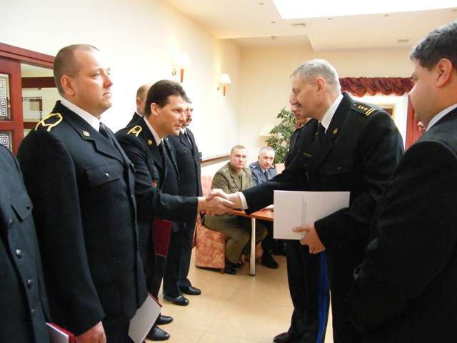 Starosta Powiatu ostrowskiego Pan Zbigniew Kamiński w podziękowaniu za współpracę na rzecz bezpieczeństwa mieszkańców powiatu ostrowskiego wręczył nagrody i listy gratulacyjne strażakom PSP: