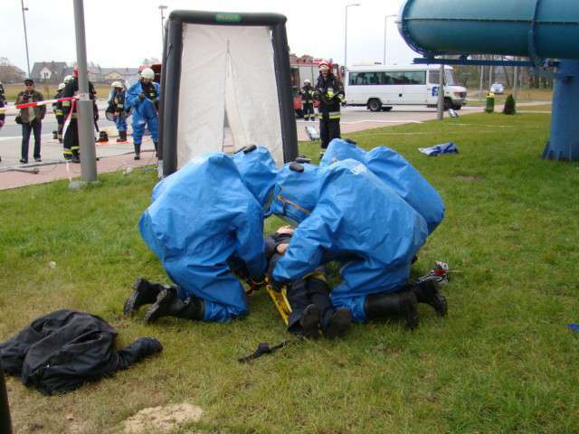 W dniu 26 października br. na obiekcie MOSiR w Ostrowi Maz. przy ul. Trębickiego odbyły się ćwiczenia ratowniczo-chemiczne połączone z ewakuacją obiektu.