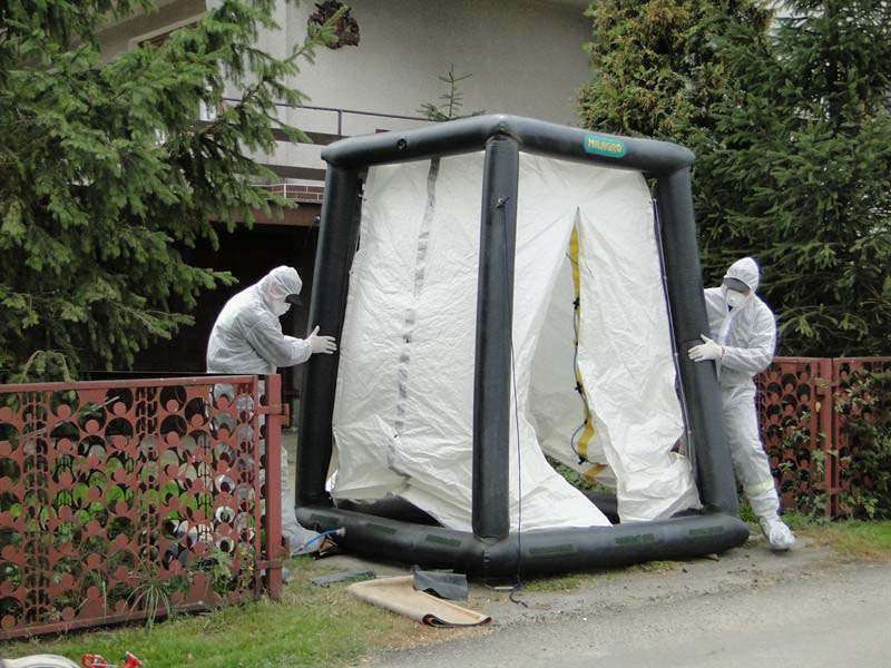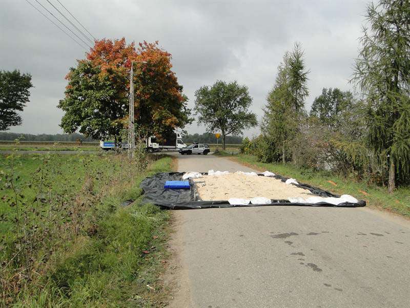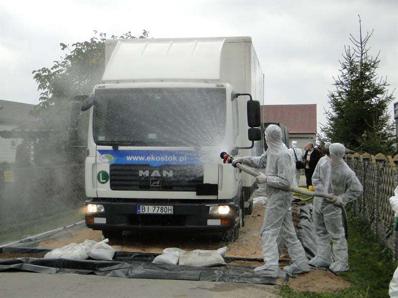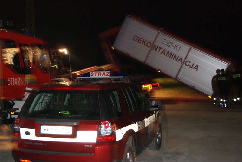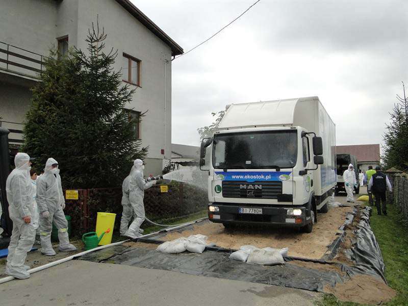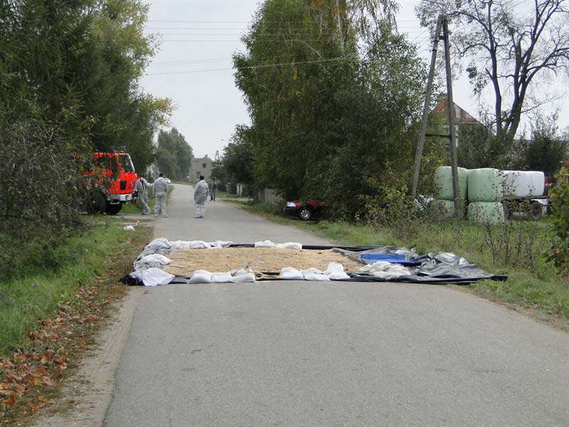 Działania zastępów straży pożarnej polegały głównie na budowie mat dezynfekcyjnych.
